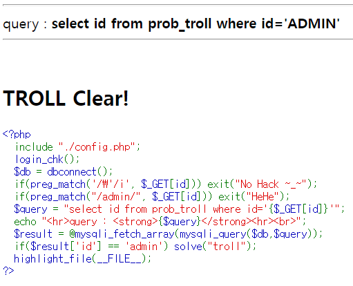 코드를 확인해보면 id에 admin이라는 값을 넣으면 되고 admin이라는 문자열은 필터링되는 것을 볼 수 있다.